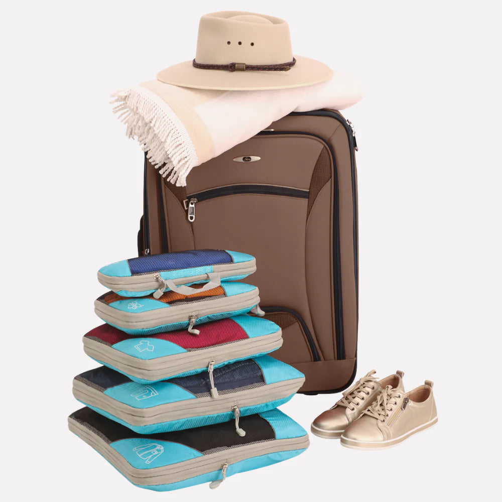 Overpack your suitcase until it’s bursting at the seams? Hate leaving outfits behind? Our Compression Packing Cubes are literally space-saving magic.